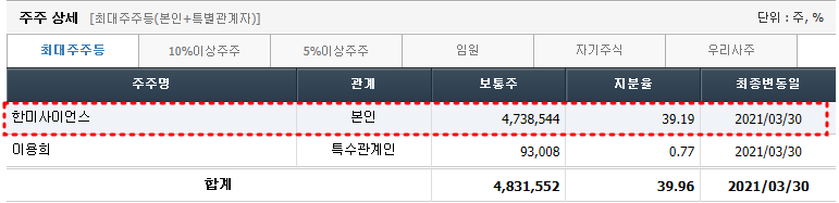 < 최대주주 >