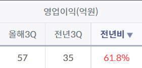 제이브이엠(JVM)의 올해 3분기 영업이익은 전년 동기 대비 61.8% 증가하였다.