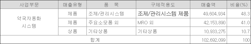 늘어나는 인건비를 절감하기 위해 대형병원 내 약국에는 그 규모에 맞는 조제 자동화 기기가 최소 3~4대가 들어가 있고, 소형 약국의 경우 새로 오픈하는 약사들은 주로 '자동화 약품 캐비닛' 장비를 주로 도입하는 상황에서 점차 국내외 조제 자동화 시스템은 커질 수 밖에 없는 상황이라 매출은 점차 증가 할 것으로 보인다.