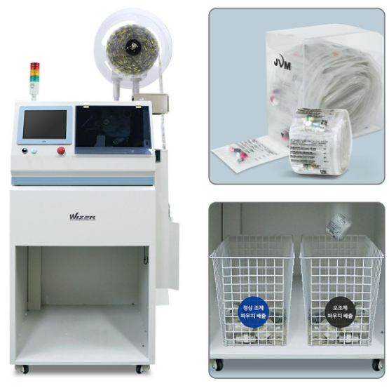 네트워크를 통한 처방전을 토대로 조제 및 검수 완료된 조제물을 환자별로 원하는 기간별로 자르고 감아주는 시스템이며 장기 처방 조제에 효과적이며, 환자의 약품 관리 및 홍보성 높은 장점이 있다.