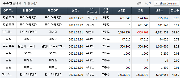최근 지분구조를 보면, 국민연금공단이 지분을 늘리고 있는 것을 볼 수 있다.
