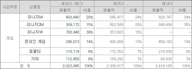 ※ 연결기준 온라인 게임은 리니지, 리니지2, 아이온, 블레이드앤소울, 길드워2의 글로벌 합계임