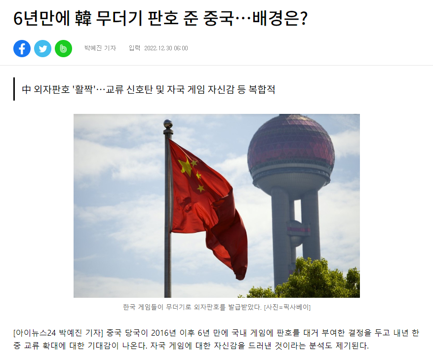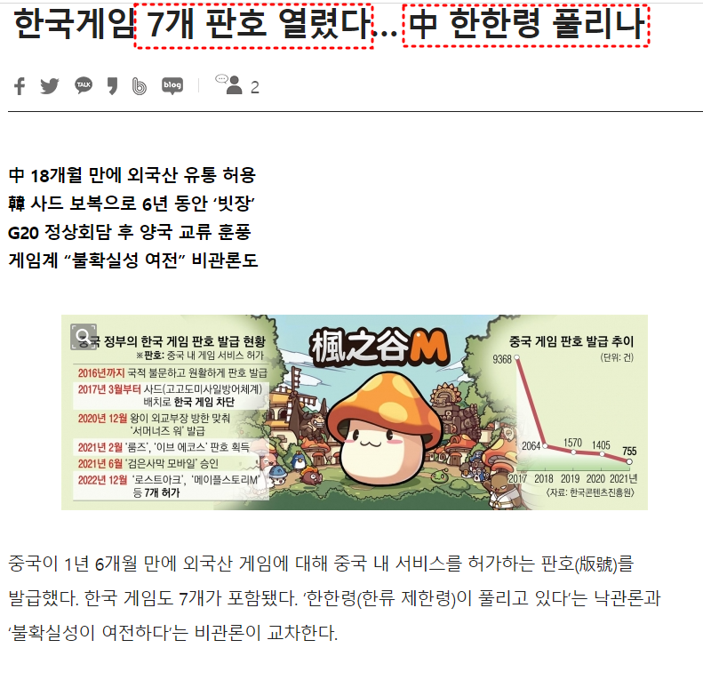 기사에 따르면, 중국 당국은 지난해 8월 “온라인 게임은 정신적 아편”이라며 게임 산업 전체를 대대적으로 단속했다. 이 때문에 텐센트, 넷이즈 등 중국 메이저 게임사들이 큰 타격을 입었다. 하지만 ‘제로 코로나’ 정책에 중국 경기가 추락하자 당국은 지난달 텐센트 게임의 판호를 승인했다. 이때부터 중국 정부가 경제를 살리고자 게임 규제를 풀 것이란 전망이 나왔다.