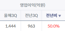 엔씨소프트의 22년 3분기 영업이익은 전년 동기 대비 50.0% 증가하였다.