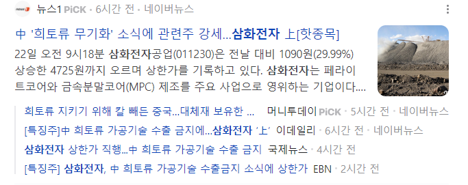 | 희귀금속(희토류 등)/ 페라이트 | 中, 희토류 가공 기술 수출 금지 소식에 상승 |