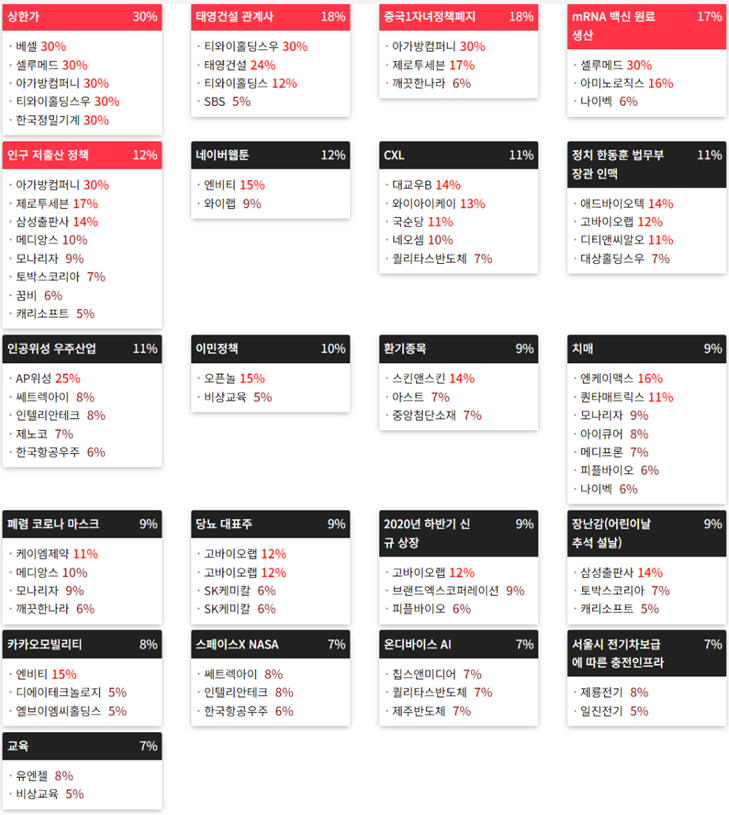 13. 오픈놀(15.01%) : 호실적 전망 및 채용 트렌드 변화 속 고성장 기대감 및 한동훈 관련주 부각
