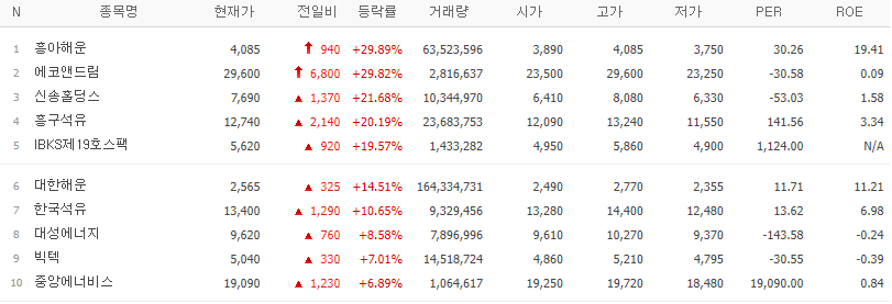 +29.89% | 美·英, 후티 근거지 공습 개시속 중동 지정학적 리스크 심화 등에 해운 테마 상승 |