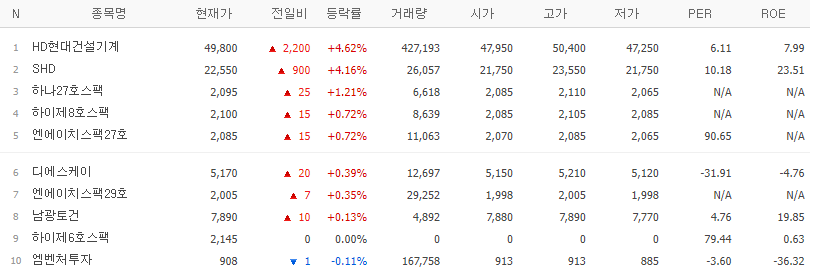 | 종목명 | 등락률(%) | 특이사항 |