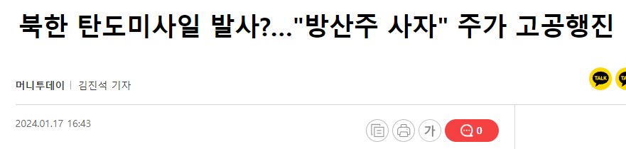 [ 북한 탄도미사일 발사?…"방산주 사자" 주가 고공행진 ]