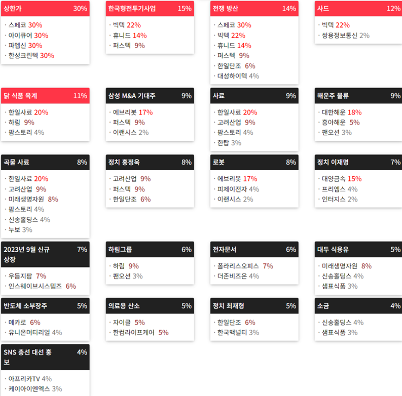홍해 리스크 지속 속 국제곡물가격 상승 전망 등에 시간외 사료/음식료업종 테마 상승