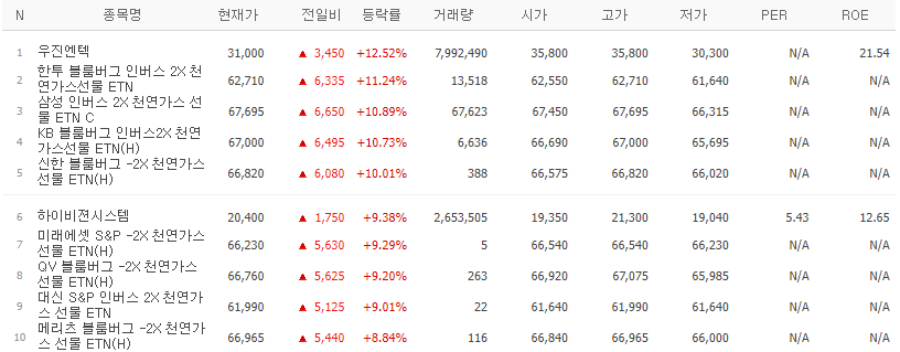 갭상승 종목중에서 전일 고가보다 당일 저가가 높은 종목 Top 10 (24.01.26(금) 종가기준)