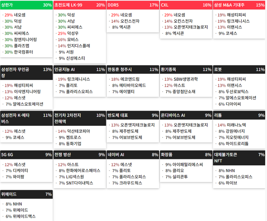 2024년 2월 14일(수) 테마에 따른 종목 상승