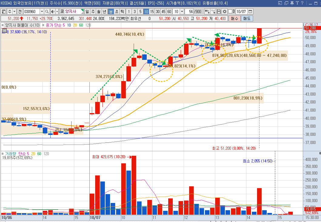 유통물량(10.4%)이 적은 양지사에 수급이 몰리는 경우가 많다.