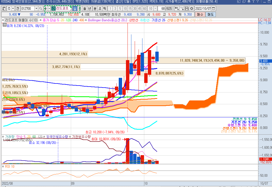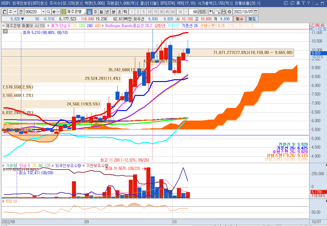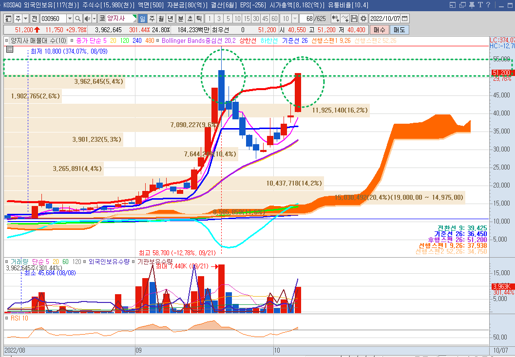 10월5일에 일목균형선 기준선 위로 안착하였다.