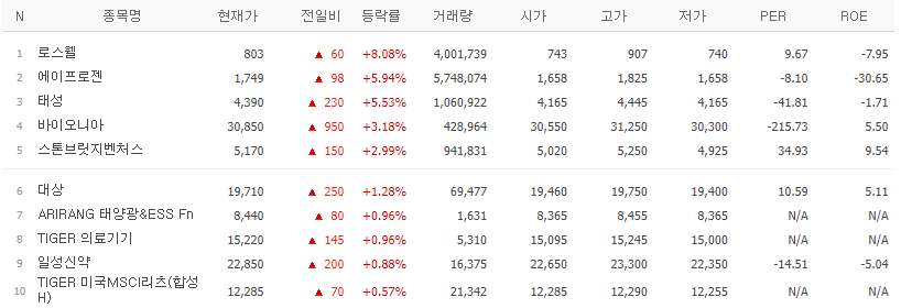 갭상승 종목중에서 전일 고가보다 당일 저가가 높은 종목 Top 10 (24.03.22(금) 종가기준)