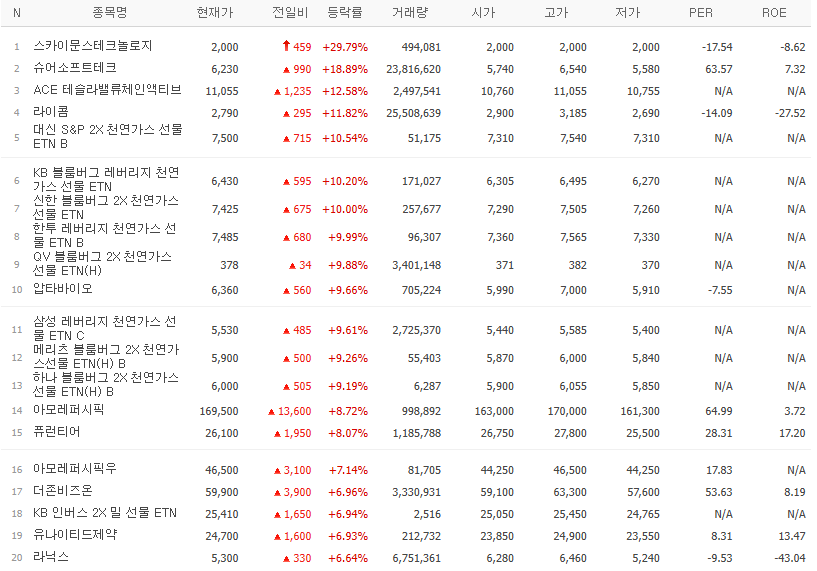 갭상승 종목중에서 전일 고가보다 당일 저가가 높은 종목 Top 10 (24.04.30(화) 종가기준)