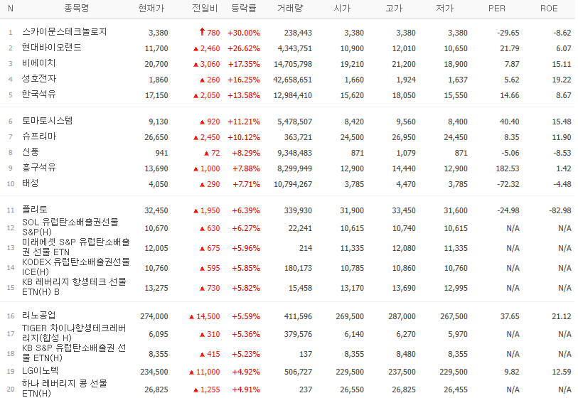 | 24.05.03(금) 금일 상승률Top30 시간외 단일가 특징주 및 휴일이슈 (76) | 2024.05.03 |