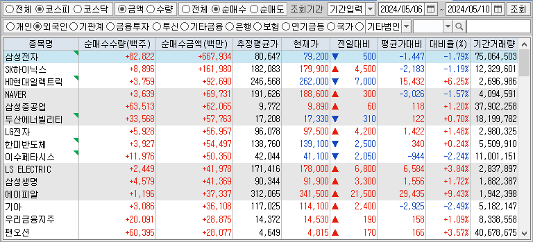 <24.05.11(토) 52주 신고가 및 주간 기관 외국인 개인 순매수 상위종목>