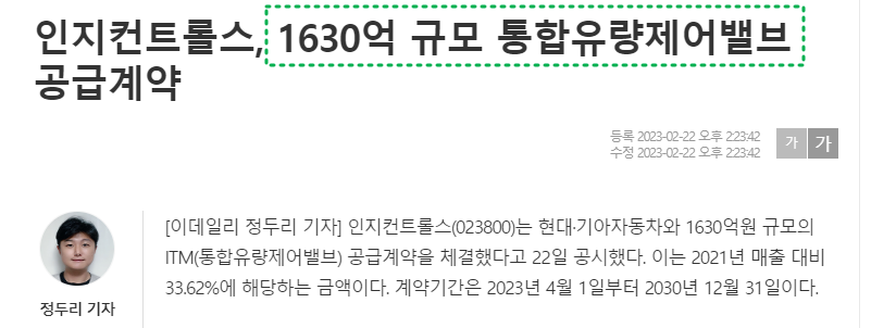매출 상승 이유에는 당연히 완성차의 실적 호조에 있다. 현대차와 기아차의 실적이 잘나오면서 인지컨트롤스의 실적도 좋아졌다.