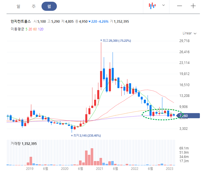 인지컨트롤스 월봉차트