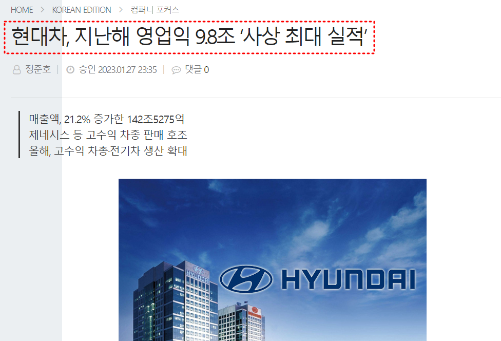 올해는 차량용 반도체 수급 완화로 인해 판매를 가속화될 것으로 보이며 한국산 전기차라도 리스 차량은 보조금 지급 대상에 포함되기에 美IRA법안에서 영향을 받지 않는 법인 판매를 늘려 미국 내 전기차 시장에서 점유율을 높여나갈 것으로 보이기에 올해 전망도 맑다.