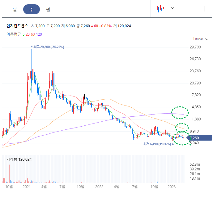 인지컨트롤스 주봉차트