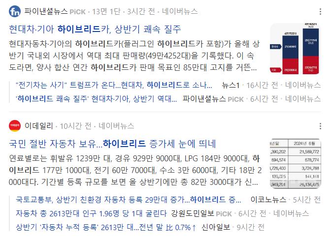 주말간 하이브리드 관련기사가 상당하다. 최근 대세로 떠오른 미국 대통령 후보자 트럼프가 전기차 생산에 제동을 거는 발언을 하는 바람에 하이브리드 차량이 부각받고 있다. 아울러 이에 맞춰 역사상 가장 많은 판매량을 기록하고 있는 주체이기에 하이브리드차 관련주인 코리아에프티를 주목해 볼 필요가 있다.