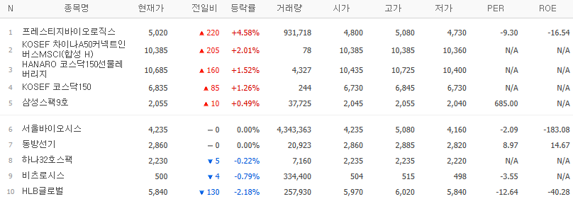 갭상승 종목중에서 전일 고가보다 당일 저가가 높은 종목 Top 10 (24.07.19(금) 종가기준)