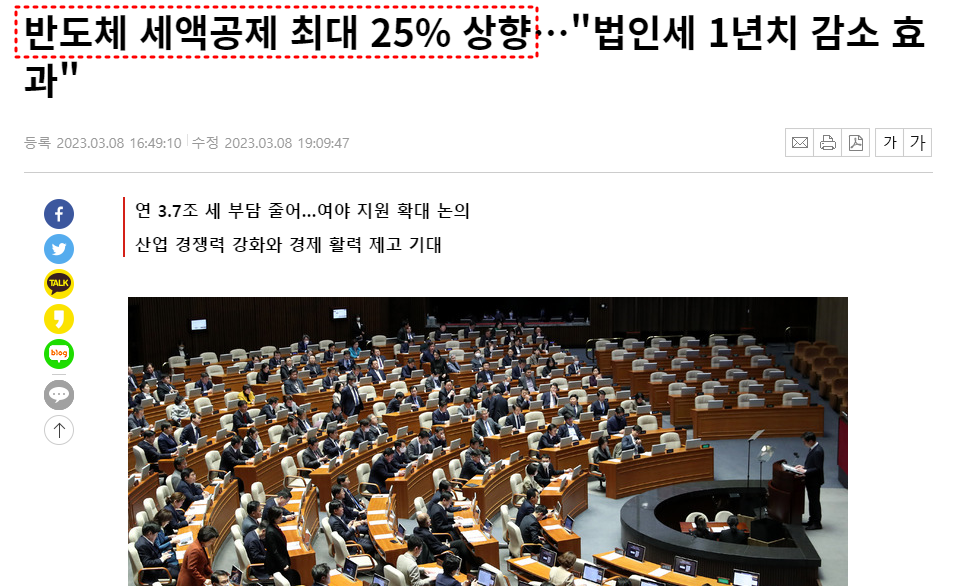 반도체 산업은 경기에 따라 등락을 반복하는 사이클 산업이라는 점에서 불황기에 어떻게 대응하는지 호황기 산업 판도가 완전히 달라질 수 있다. 대한상공회의소에 의하면 세액공제율 상향의 효과는 특히 경제 위기 시기에 더 효과가 분명한 것으로 드러났다. 따라서, 조만간 K칩스법 통과에 따른 반도체 세액공제 기대감이 곧 주가에 반영될 가능성 높다.
