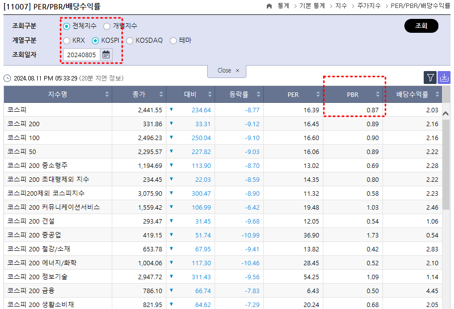 다시 본론으로 돌아와서, 차주 코스피는 지난주에 연이어 지속상승하기에는 상승동력이 떨어지며, 아직 추가적으로 상승시킬만한 명분이 따로 없기에 2630bp 정도쯤에서 제한받고 다시 조정을 받을 것으로 예상해본다. 지난 8월9일(금) 기준 코스피 PBR이 0.93이므로 아마 PBR 1 찍고 다시 내려올것 같고, 이동평균선으로 보면 일봉 10일선 저항대를 받고 다시 하락조정이 이어질 것으로 예측해본다. 그렇다고 다시 추세적 하락이라기보다 단기적인 하락이자 횡보장이니 너무 두려워하지 말길 바란다.