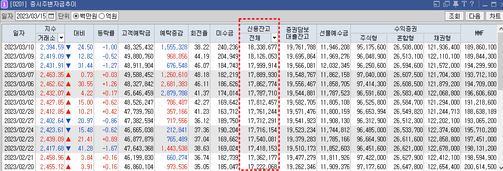 또한, 하락의 큰 원인중 하나는 바로 신용잔고에 있다. 최근들어 신용잔고가 가파르게 늘었는데 이에 따른 부담이 증시에 작용하는 것이다.