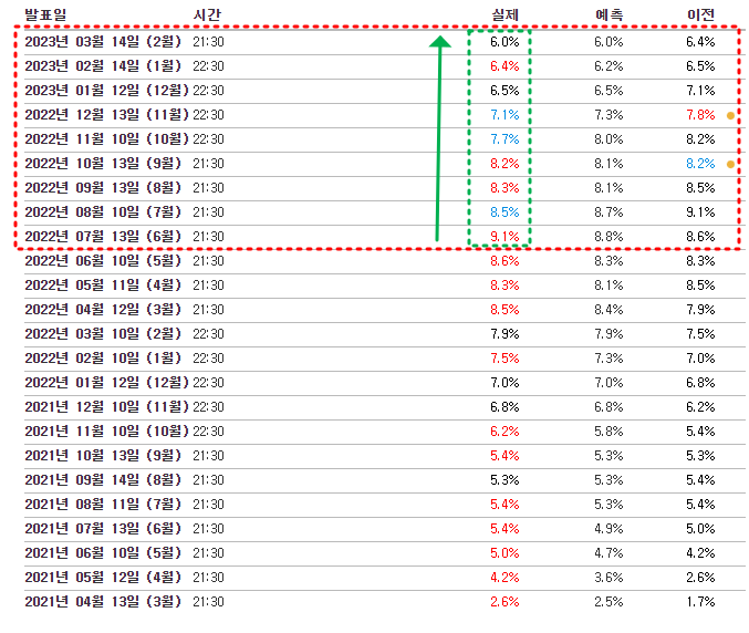 결론적으로 말하자면, 우선 한숨을 돌린 시장인 것은 확실하다. 시장예상치보다 더 낮은 수치를 기대했지만 아쉽게도 예측과 비슷한 6%대로 만족해야한다. 이전 수치인 6.4%보다 확실히 물가가 떨어지고 있다는 것은 긍정적으로 볼 수 있기 때문이다.