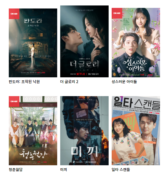 작년에 인기가 많았던 '스물다섯 스물하나' 부터 시작해서 '군검사 도베르만' , '우리들의 블루스', '유미의세포들 시즌2', '아다마스', '빅마우스' 그리고 '작은아씨들', 최근에는 '일타스캔들' 까지 시청률이 높은 드라마들은 대부분 스튜디오드래곤을 거쳐갔다고 보면 된다.