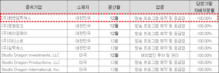 [ 스튜디오드래곤 지배기업의 연결대상 종속기업 현황 ]