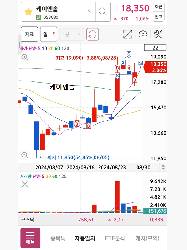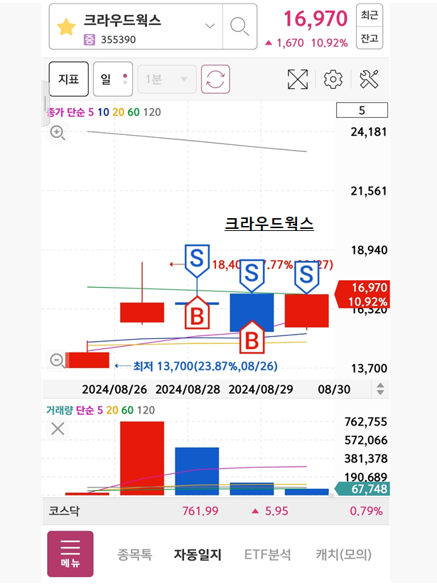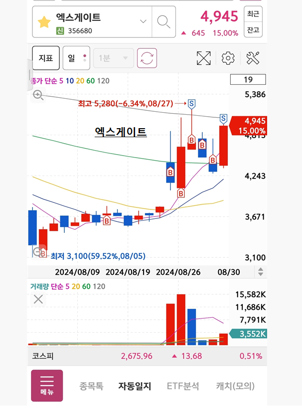 < 24.08.30(금) 차트충의 오늘의 매매일지 및 뒤늦은 휴가 >