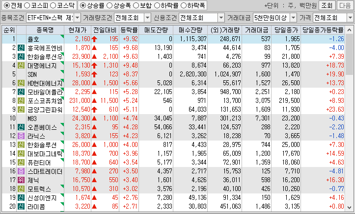 9. SDN(19.9%) : 美 대선 토론 후 해리스 부통령 우세 평가 등에 태양광에 너지 테마 상승 속 급등