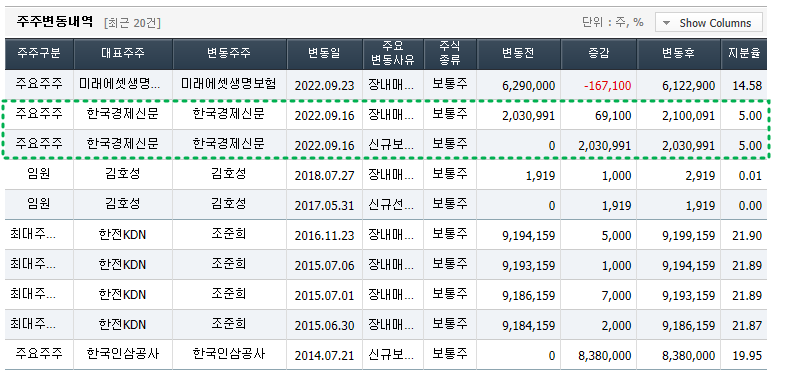 한국경제TV를 포함한 보유지분은 기존 4.84%에서 5%로 늘어났다. 지분 5%부터 내부경영상황을 알아볼 수 있는 권리가 생기기 때문에 이번 매수가 인수전에 대비하기 위한 것이라는 분석이다.
