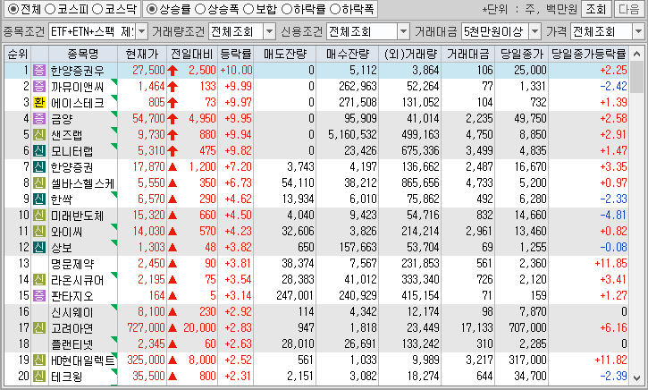 2024년 9월 19일(목) 금일 상승률 TOP30