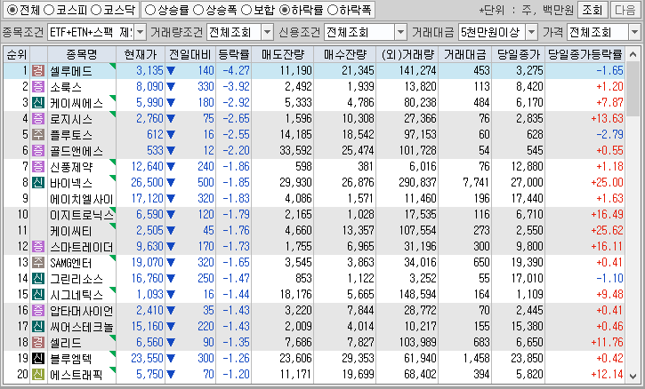 20. 씨엔알리서치(13.35%) : 뉴로바이오젠 알츠하이머·비만 치료제 식약처 임상 승인 소식에 급등