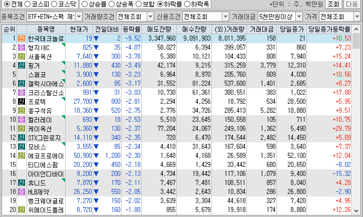 18. 시간외 일부 STO(토큰증권 발행) 테마 하락