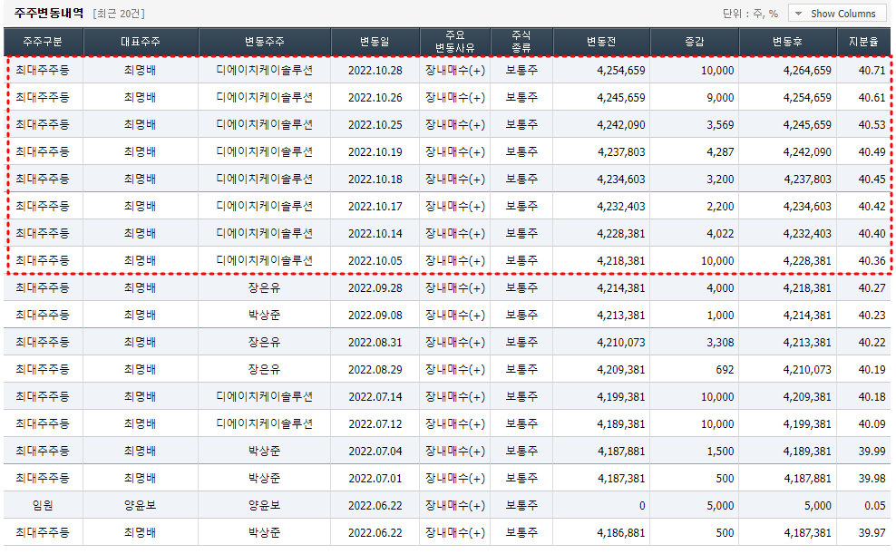 작년 10월, 엑시콘의 최대주주 중 하나인 디에이치케이솔루션이 장내매수를 하였다. 내부자가 장내매수를 한다는 것은 그만큼 기업의 가치가 많이 저평가 되어 있다는 뜻이다.