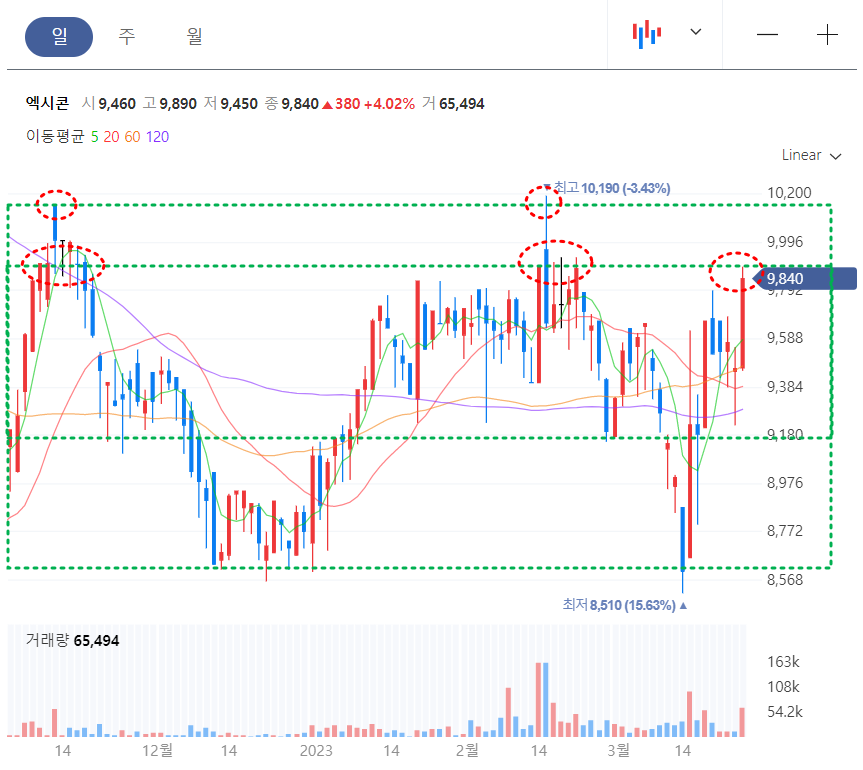 (3) 엑시콘 일봉 차트분석