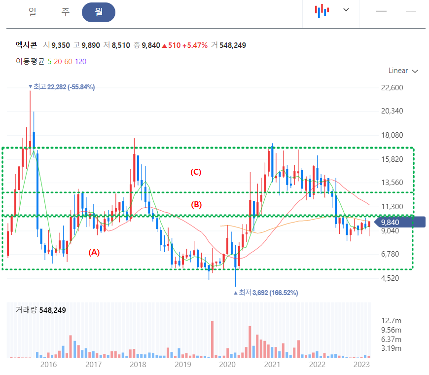 (1) 엑시콘 월봉 차트분석